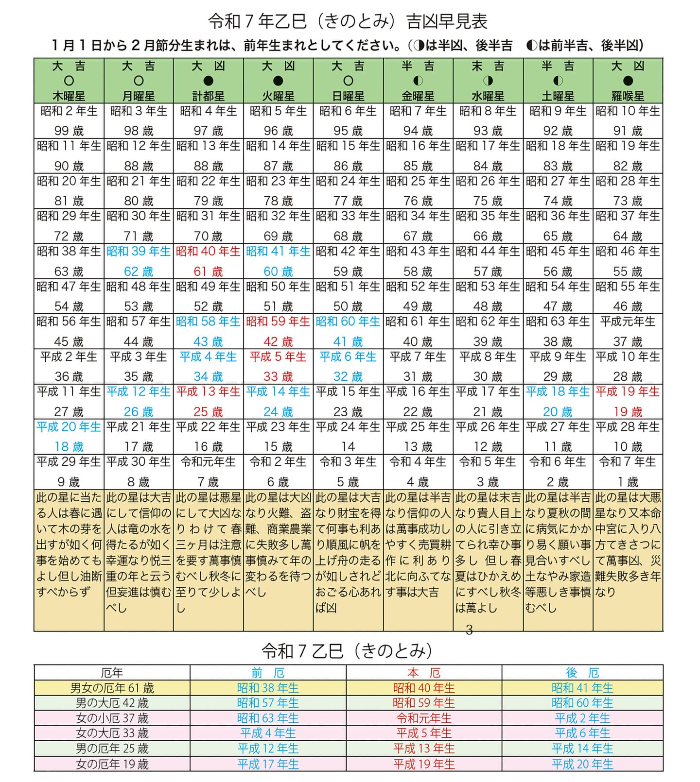 吉凶早見表を参考に必要事項をご記入のうえ、お申し込み下さい。お札(もしくはお守り)は2月3日以降に郵送いたします。